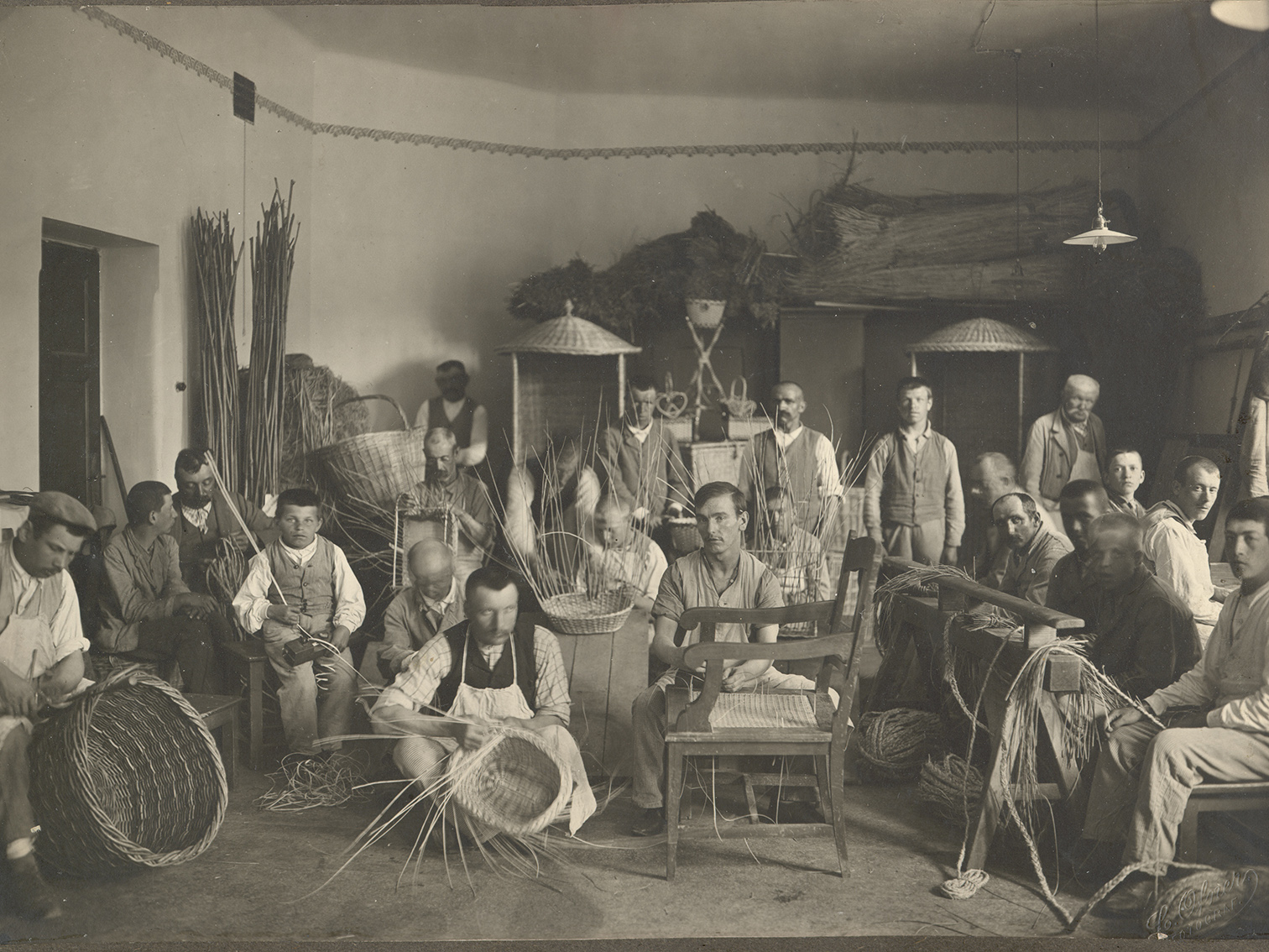 Schlosserei und Holzwerkstätten waren nötig, um Möbel zu tischlern oder Wagenräder zu reparieren. Selbst eine Buchbinderei und Korbflechterei war untergebracht. Hier wurden Akten gebunden und schicke Korbwaren für den Eigenbedarf und sogar für den Verkauf hergestellt.