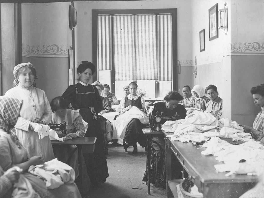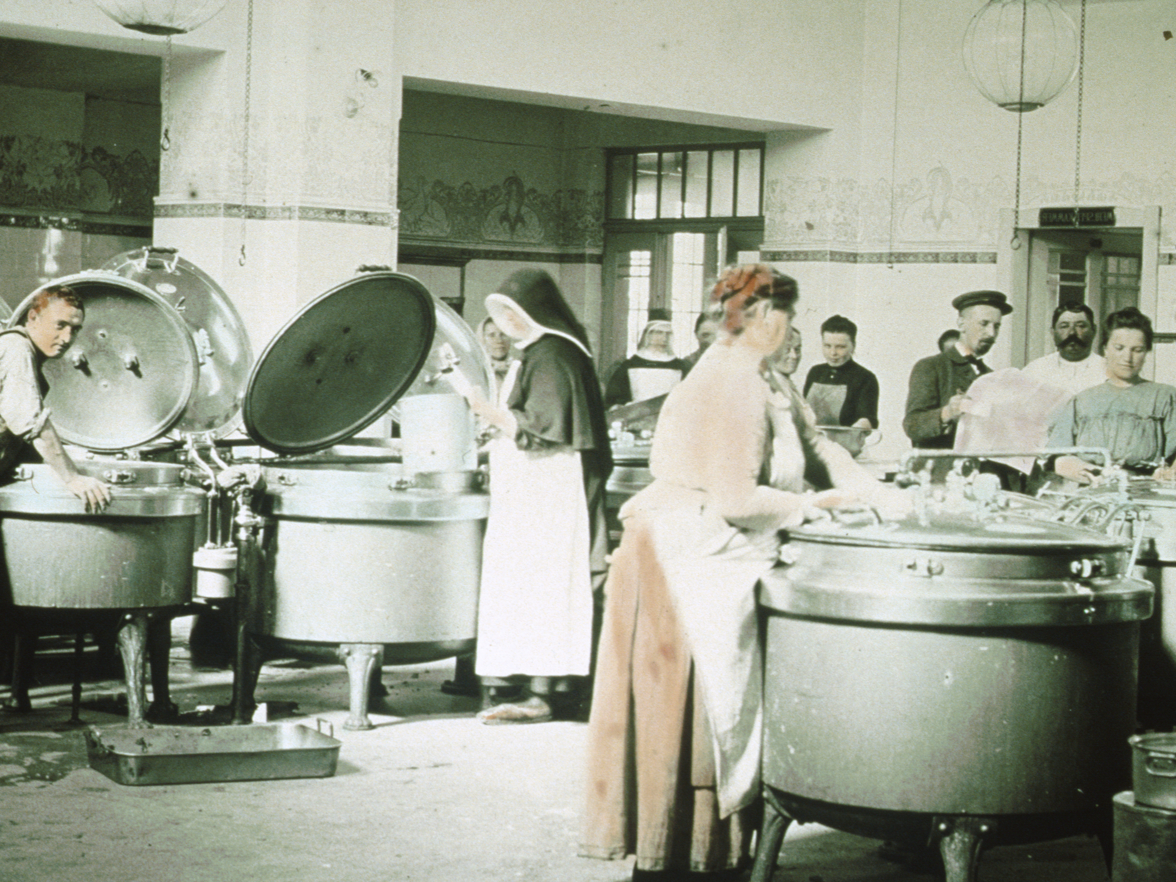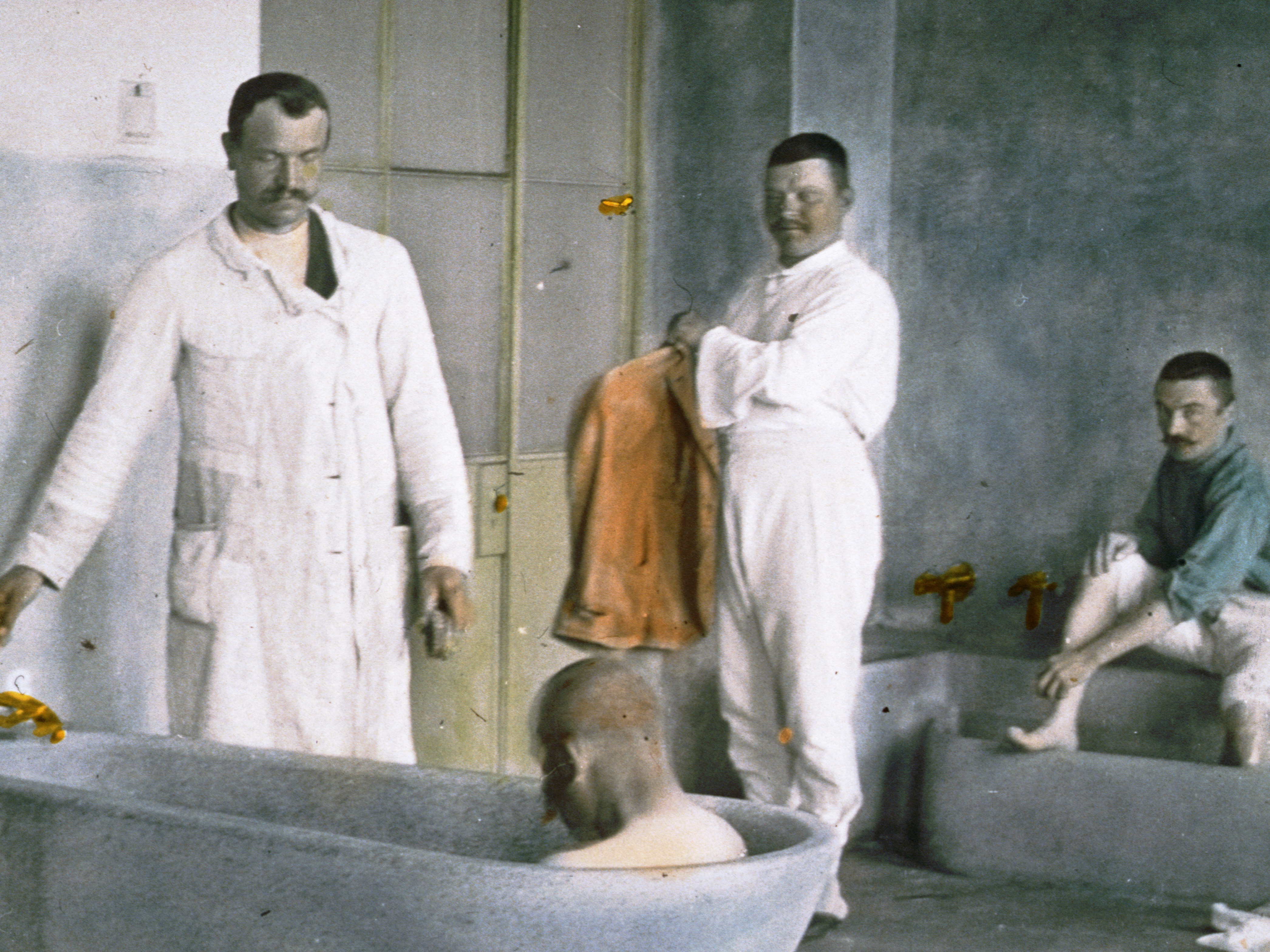 Die damalige Bettwäsche und Kleidung war lange im Einsatz. In der Wäscherei und Näherei würde sie laufend gereinigt, geflickt und genäht. Das Badehaus war der Ort für Hygiene. Dort wurden die Patientinnen und Patienten ein Mal wöchentlich gewaschen.