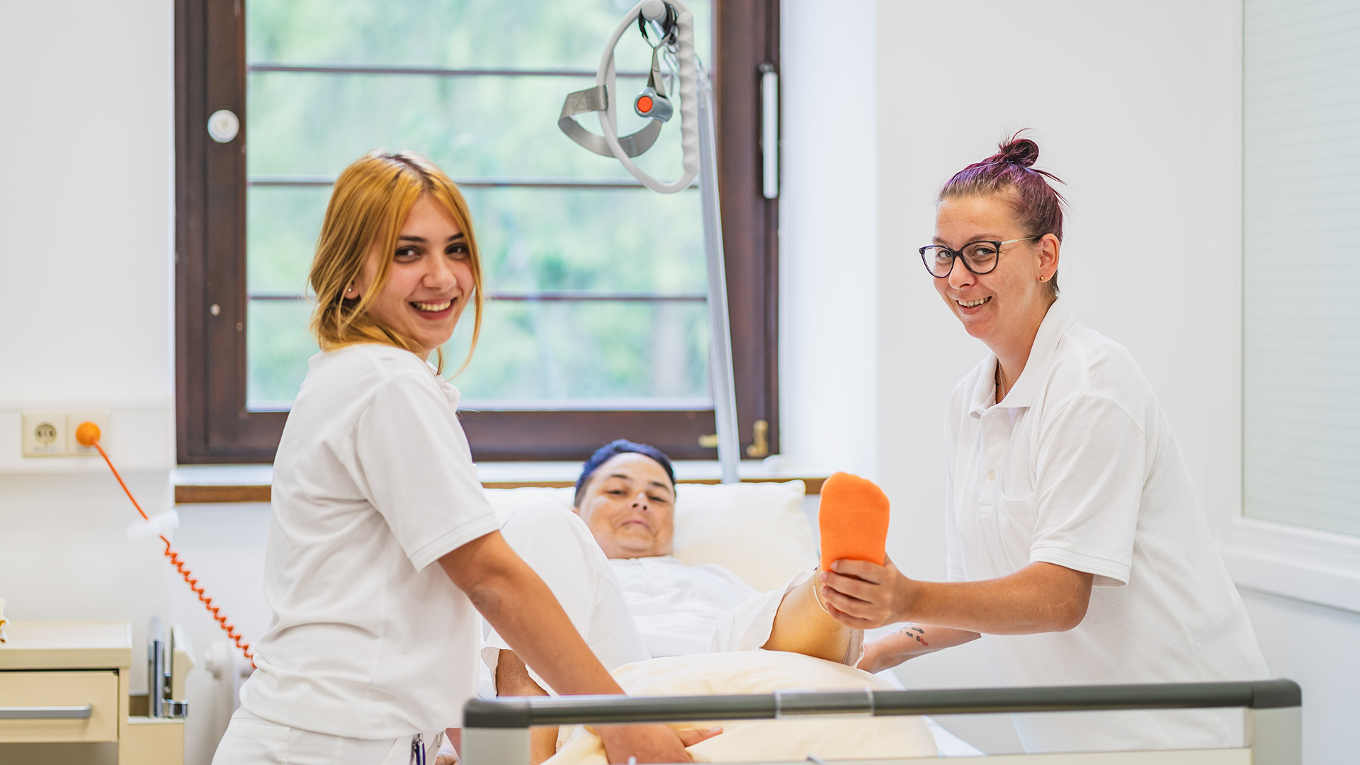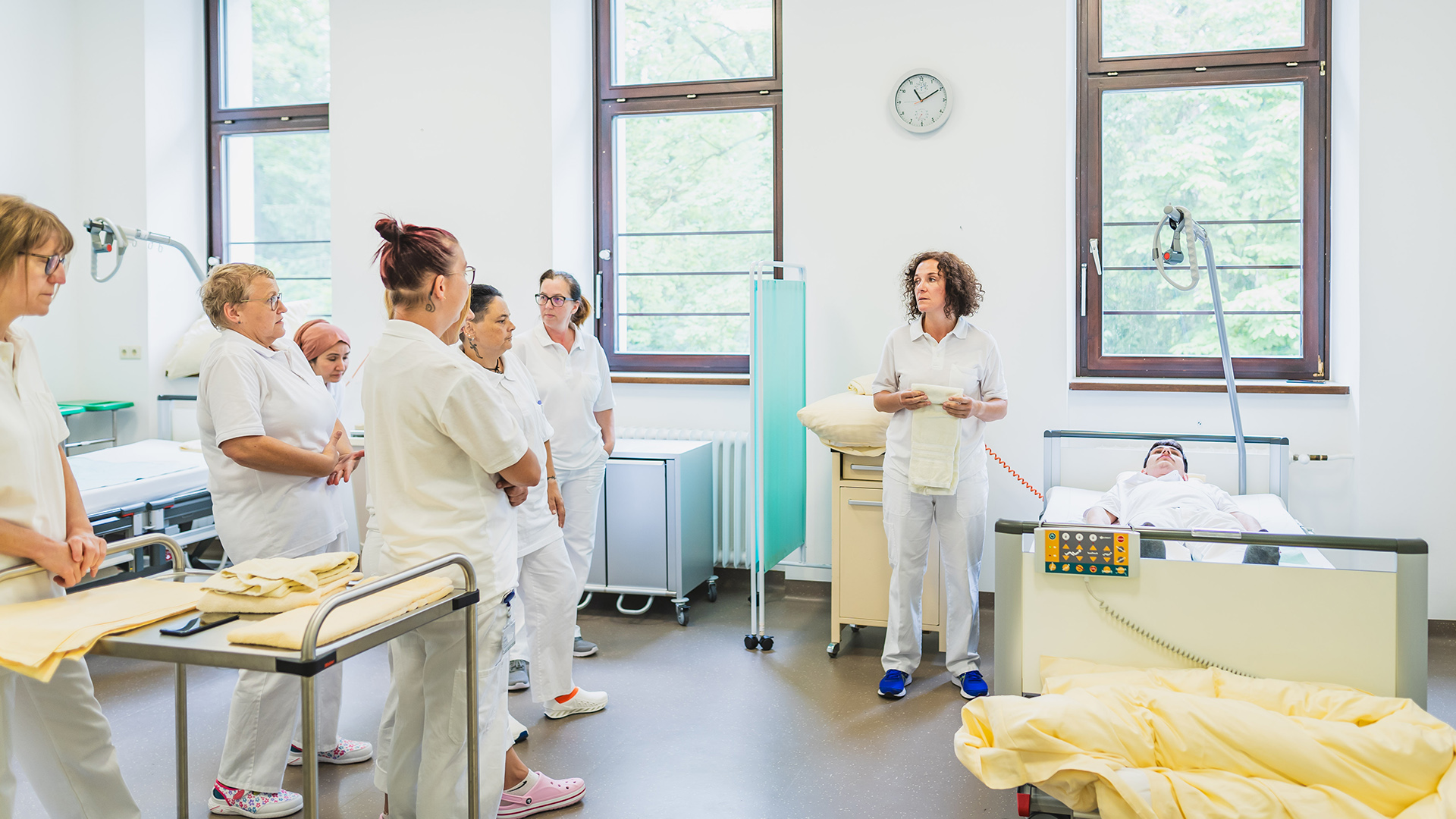 Rund 300 Auszubildende jährlich absolvieren verschiedene Ausbildungen im Bereich der Pflege – von der einjährigen Ausbildung zur Pflegeassistenz bis hin zum 3-jährigen Bachelorstudium für Gesundheits- und Krankenpflege.