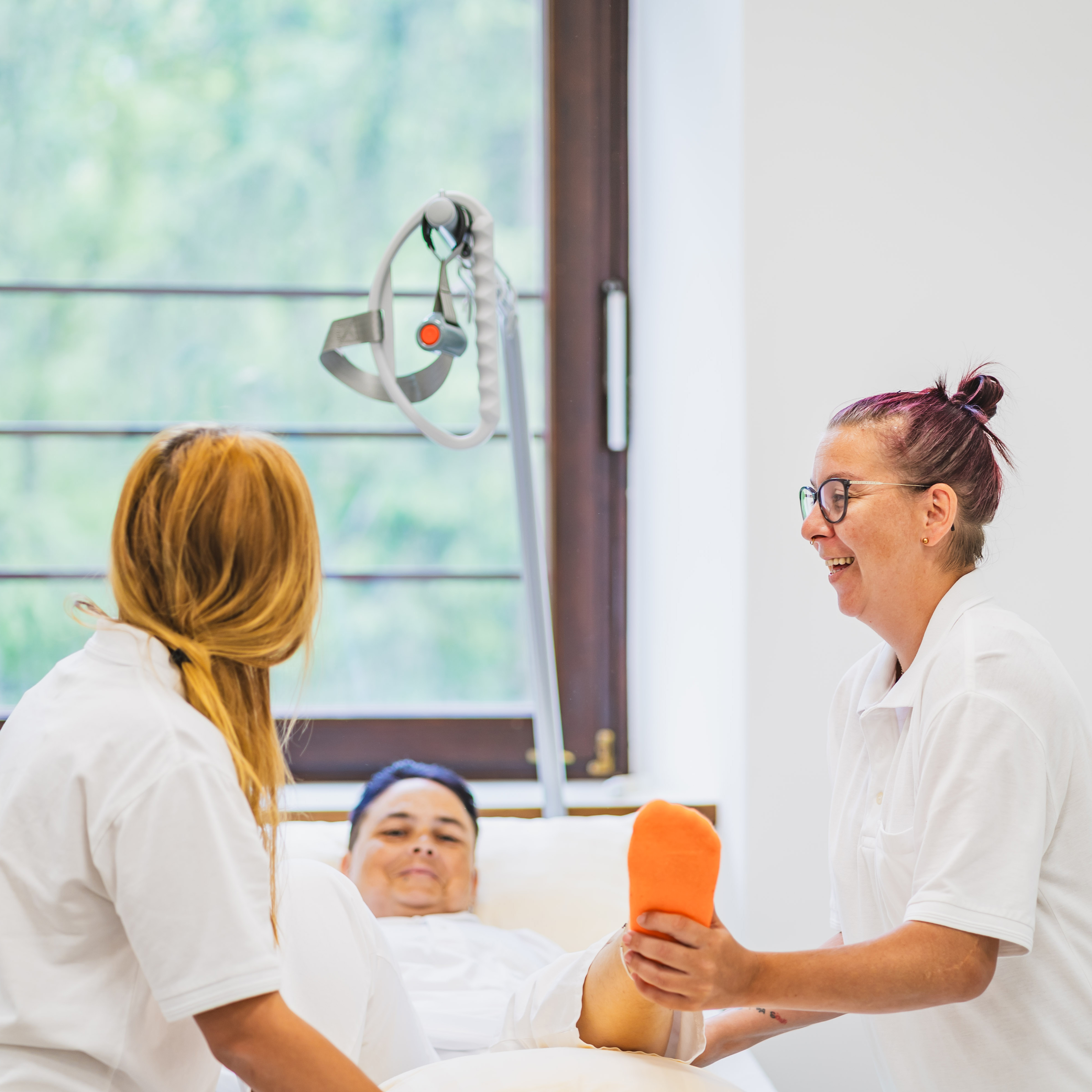 Die medizinische Pflege umfasst Unterstützung bei der Körperpflege, Hilfe beim Essen, Mobilität, Hilfe beim An- und Ausziehen, Begleitung zwischen Therapieterminen und Räumlichkeiten, aber auch soziale Aktivitäten, Spaziergänge, Sport & Bewegung, …